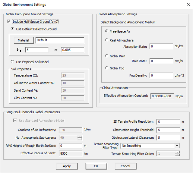 - Keep the default ray domain and accept the default global ground or change its material properties.
