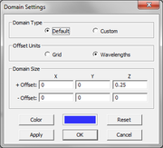 - Check the box labeled Periodic Structure and click the Apply button of this dialog. The default domain box initially shrinks to the edges of the physical structure in the project workspace. The default periods along the X and Y axes appear in the dialog, which are equal to the dimensions of the structure's bounding box.