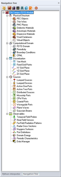 Your physical structure in EM.Tempo can be made up of several geometric objects with different material compositions. EM.Tempo groups your geometric objects in the project workspace based on their material type. All the objects belonging to the same material group share the same color and same material properties. EM.Tempo's material types are divided into seven categories: