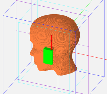 The FDTD mesh of the human head model and the cellular phone handset.