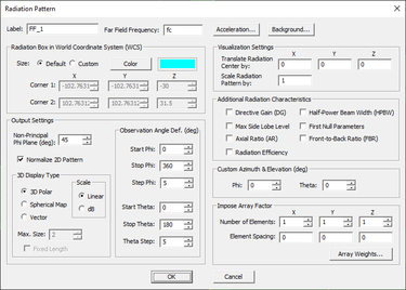 EM.Tempo's Radiation Pattern dialog.