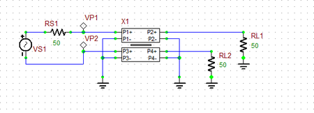 Four 50Ω Resistors: RS1, RS2, RL1 and RL2 (keyboard shortcut: R)